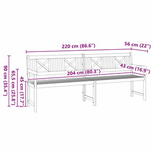 Trädgårdsbänk Brun 220 x 56 x 90 cm Massivt Akaciaträ