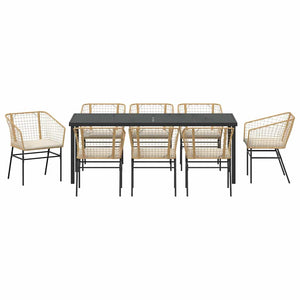 - Material: Det här fina dining setet är gjort av pålitlig Poly Rattan som tål väder och vind. Den pulverlackade stålramen ger en stabil bas, och glasytan ger en modern touch som gör det lätt att matcha med olika utomhusmiljöer.