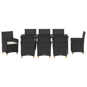 Trädgårdsmöbelset 9 pcs Svart konstrotting