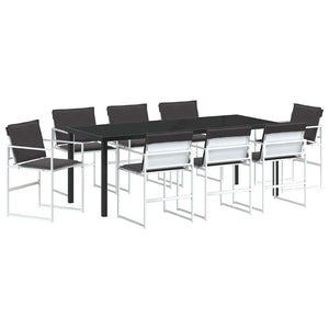 Trädgårdsmöbelset 9 pcs Vit Pulverlackerat stål