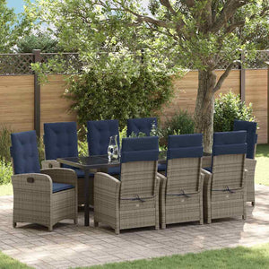 Trädgårdsmöbelset med kudde 9 pcs Grå konstrotting
