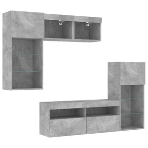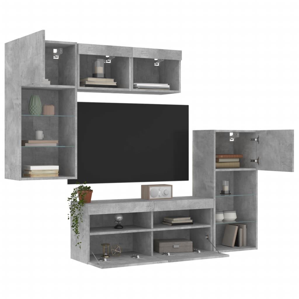 Tv-bänk 5 delar LED betonggrå konstruerat trä