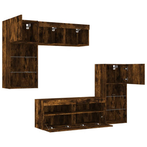 Tv-bänk 5 delar LED rökfärgad ek konstruerat trä