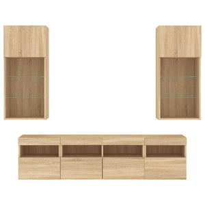 Tv-bänk 5 delar LED sonoma-ek konstruerat trä