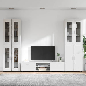 TV-bänkset med låda FLORIN Högblanka vita Konstruerat trä