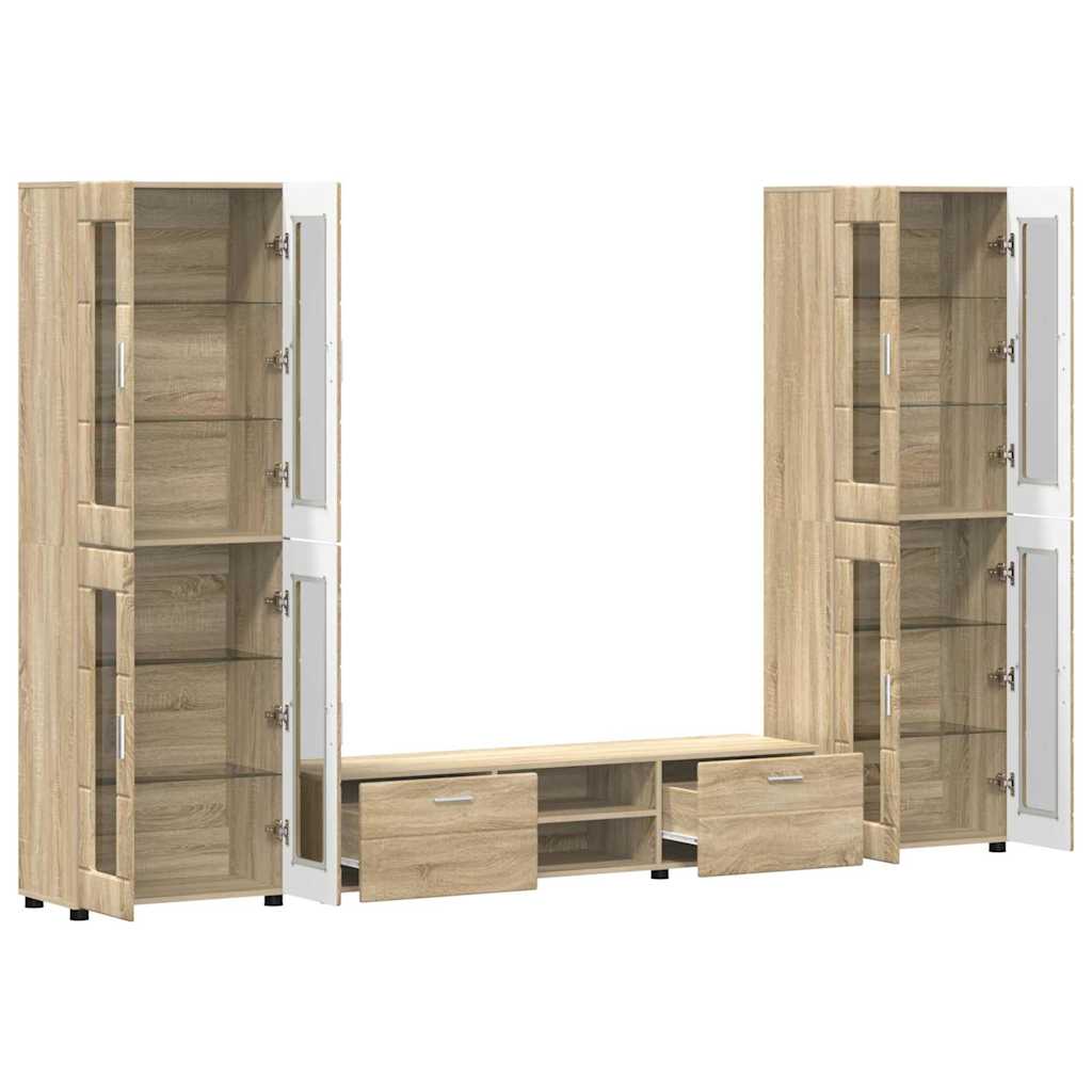 TV-bänkset med låda med hylla FLORIN Sonoma-ek Konstruerat trä