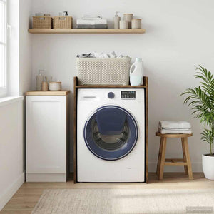 Det här moderna tvättmaskinskåpet är både stiligt och funktionellt och passar perfekt i alla badrum. Med sin slanka, minimalistiska design smälter det lätt in i dagens inredningar. Storleken 67,5 x 62 x 97 cm gör att du kan rymma dina grejer, vilket både förbättrar förvaringen och utseendet. Det konstruerade träet är hållbart och de släta ytorna ger en stilren känsla. Det här skåpet är perfekt för att hålla ordning och gör att ditt badrum ser bra ut.