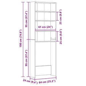 Tvättmaskinskåp Svart Ek 64 x 24 x 190 cm Konstruerat trä