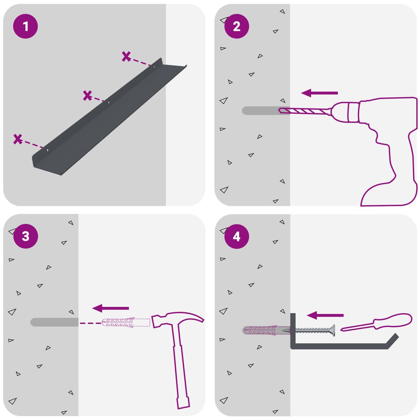 - Enkel installation Hyllan är lätt att sätta upp på väggen med några grundläggande verktyg. Skruvar ingår inte, så välj dem utifrån din väggtyp.