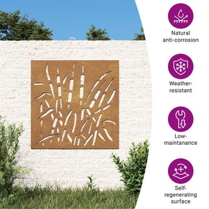 Väggdekoration 55x55 cm rosttrögt stål gräsdesign